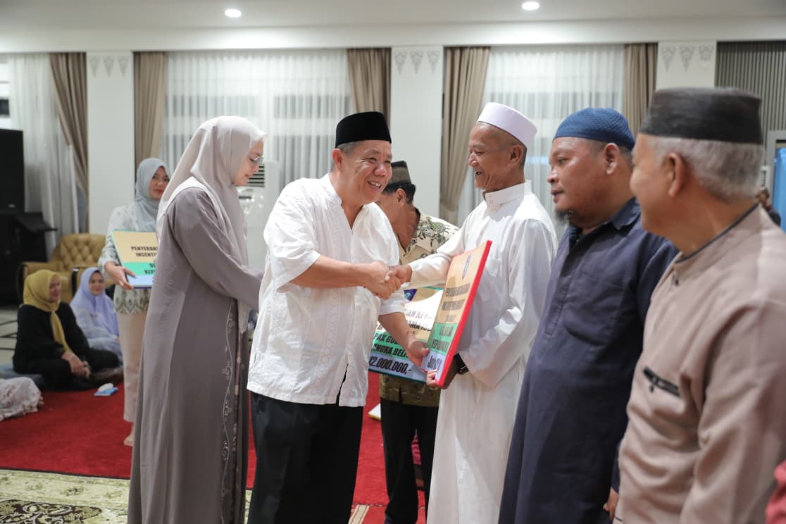 “Bapak Erzaldi bisa mencoret kegiatan lain, tetapi tidak pernah mencoret kegiatan yang bersentuhan langsung dengan kebutuhan masyarakat. Kami mohon maaf jika bantuan yang diberikan tidak seberapa, tetapi kiranya bantuan ini dapat bapak/ibu manfaatkan sebaik-baiknya. Bantuan ini terdiri dari 5 kg beras sebagai sumber kalori, 1 kg gula pasir, 2 lt minyak goreng sebagai sumber lemak, 1 kg kacang hijau sebagai sumber mineral dan vitamin, 2 bungkus abon sapi, dan 1 kaleng ikan kaleng sebagai sumber proteinnya,” papar Sri Rejeki dalam sambutannya.